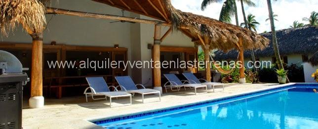 Ubicada en una residencia de lujo cercada de matas de coco, en la hermosísima playa de Coson en Las Terrenas. Una villa privada de estilo Caribe, piscina, un jardín tropical alrededor a 50 metros de la playa.